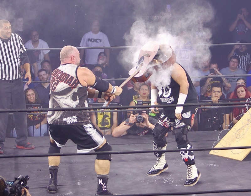 米国フィラデルフィア州の2300アリーナ(旧ECWアリーナ)で、米国現地時間8月6日19時半から、「バトルグランド・チャンピオンシップ」が開催され、日本から大仁田厚が参戦し、チェーンソートニーとタッグを組みブリー・レイ(元ECWとWWE所属)、PCO組と対戦した。