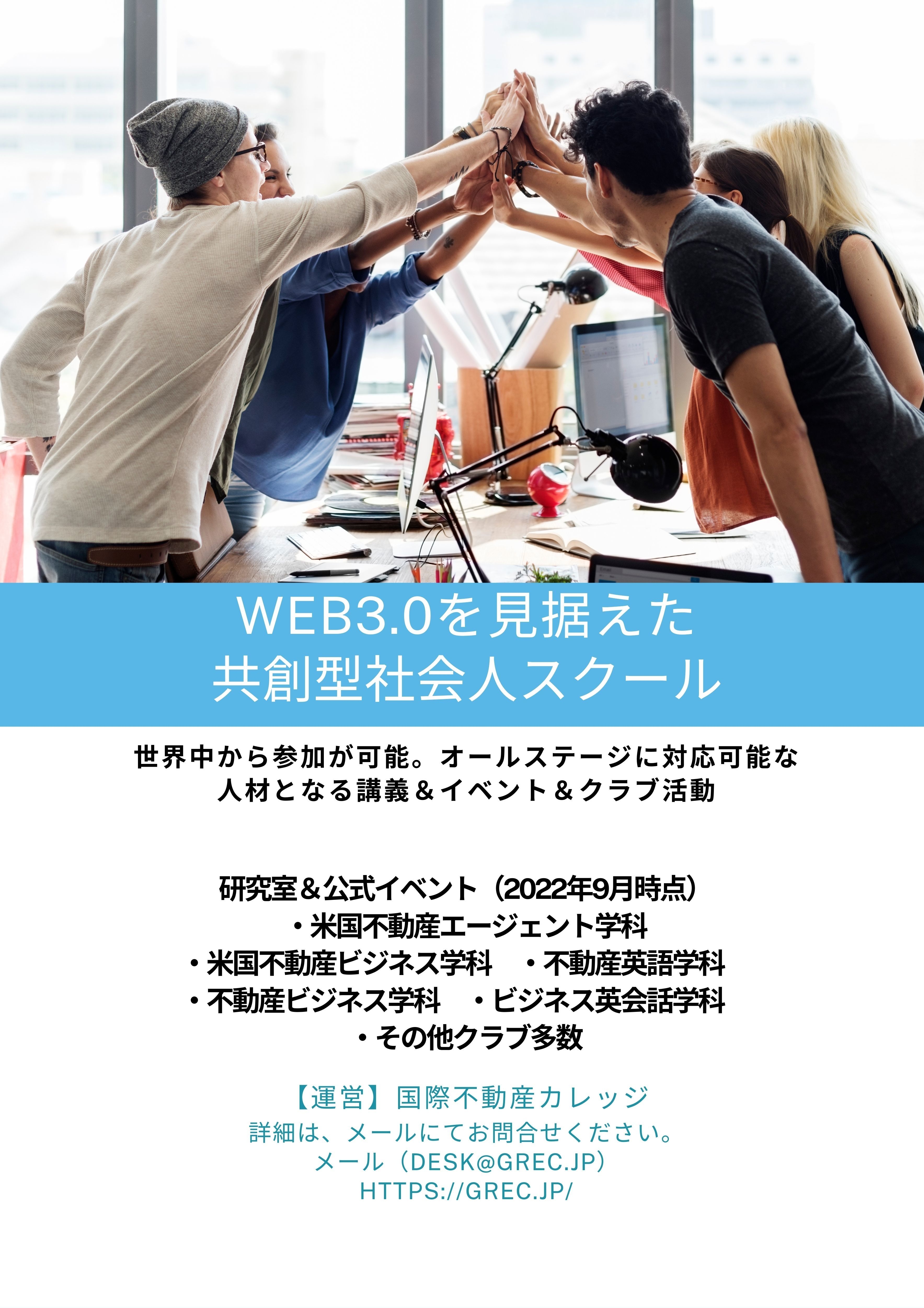 不動産業界の方はグローバル不動産ビジネスの習得とスキルアップが可能となり、他業種の方もメタバーススクールで様々な体験、自身のクラブ構築等が可能となり、今後のWEB3.0時代の到来に向けた準備、スキル習得が可能となります。
