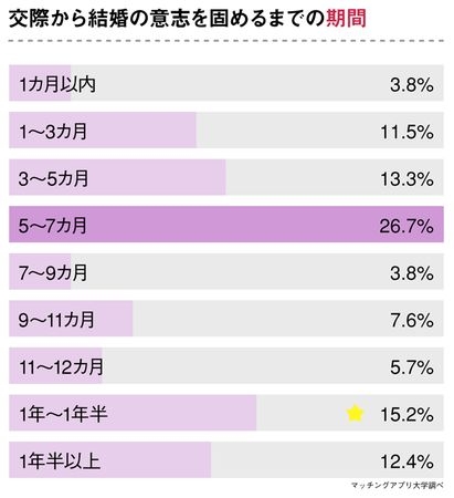 交際から結婚の意志を固めるまでは「半年前後」が多い