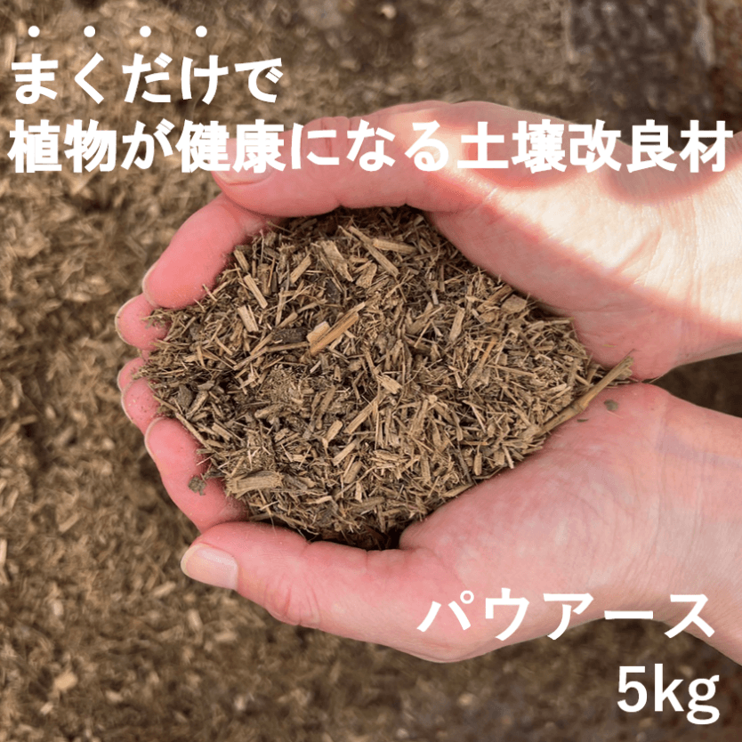製品名は「パウアース」。まくだけで植物が元気に育つ商品でございます。