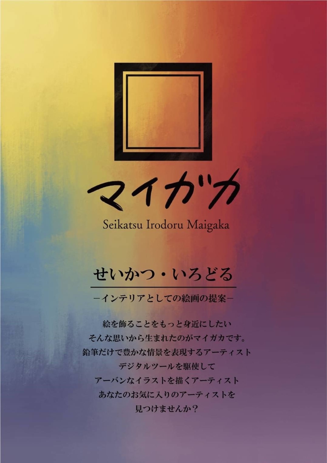 私たちは「マイガカ」を通じて、絵画をインテリアとしてだけでなく、日々の生活の潤いや癒しとして楽しむご提案をいたします。