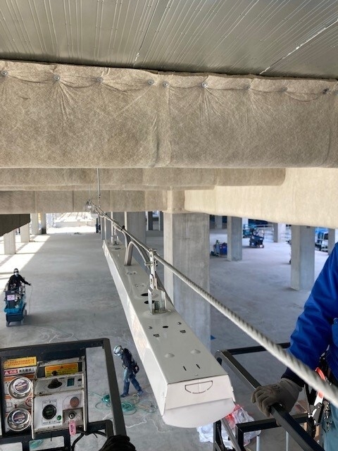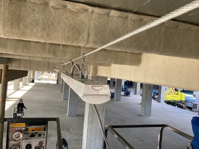 現在、多くのゼネコン様、サブコン様にご使用いただいております。物流倉庫、工場、駐車場などの現場で多くご使用いただき、特に弊社よりご提供させて頂く計算書(径間、弛度、重量)をベースに適切な張力で、圧倒的に早く、少ない人数で施工が出来ると、非常に高い評価をいただいている工法となります。
