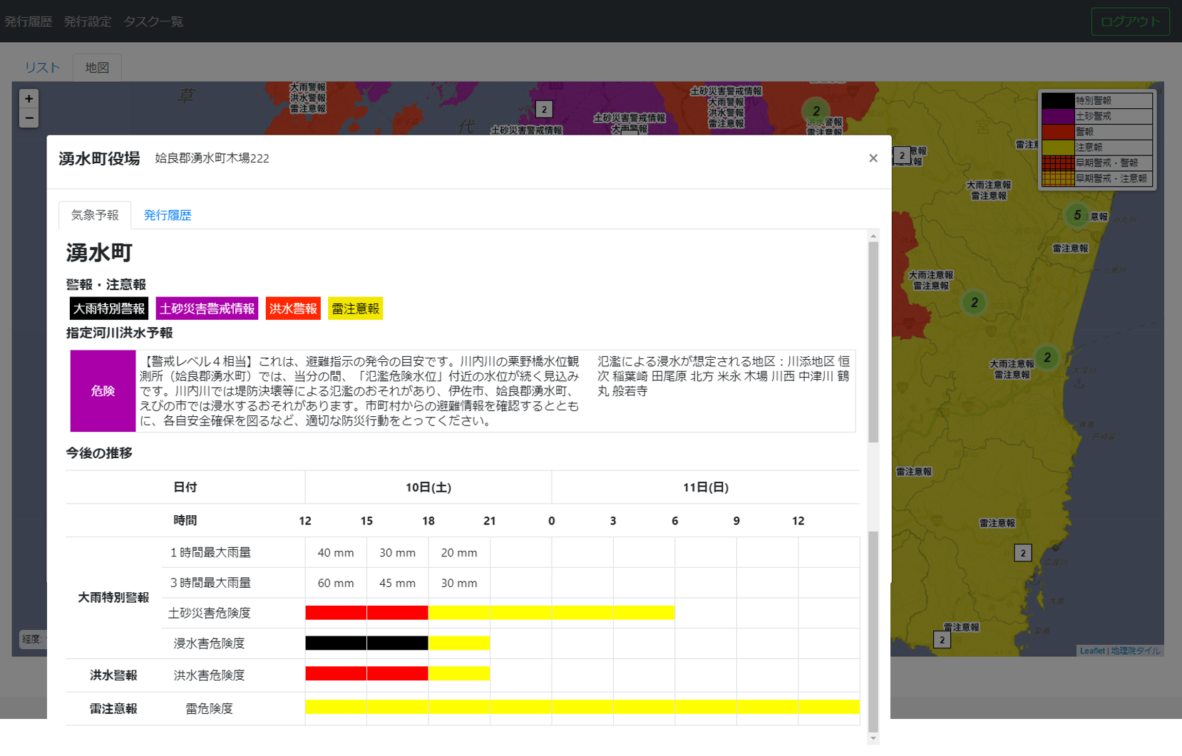 各業務実施場所における災害リスクについて、国土地理院「ハザードマップポータルサイト」の情報を基に分析することができます。