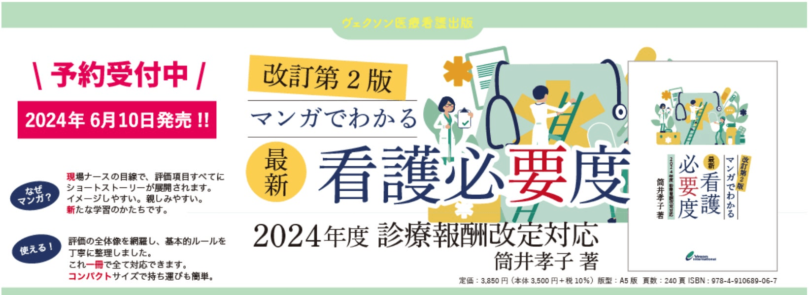 ヴェクソンインターナショナル株式会社(本社:東京都千代田区 代表取締役:兼久隆史)は、2024年6月10日に『最新 看護必要度-マンガでわかる-(2024年度 診療報酬改定対応)』を発売いたします。