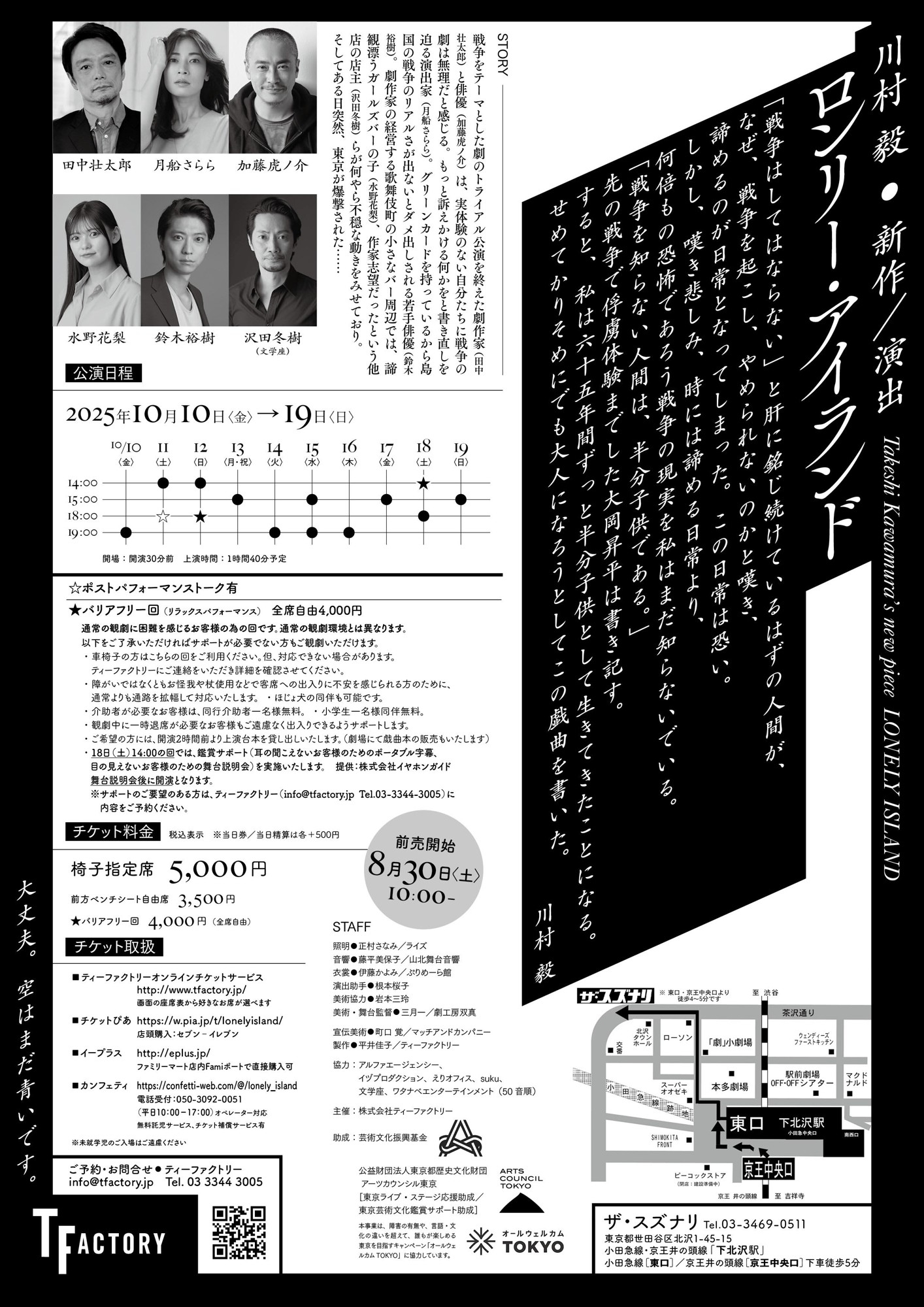 ティーファクトリー主催、『ロンリー・アイランド』が2025年10月10日 (金) 〜 2025年10月19日 (日)にザ・スズナリ(東京都 世田谷区 北沢 1-45-15)にて上演されます。 チケットはカンフェティ(運営:ロングランプランニング株式会社、東京都新宿区、代表取締役:榑松 大剛)にて発売中です。