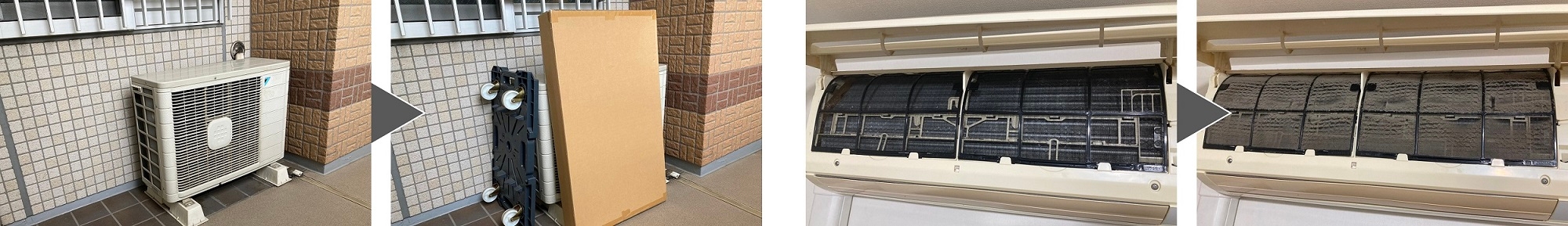 エアコンのフィルターを1年間掃除しないと消費電力量が約25%増加する場合があることが試算されています。さらに長い期間掃除されていない可能性も考えられます。約3年分のホコリが溜まったフィルターを用いて実験したところ、フィルターの目詰まりで、48.9%の消費電力量が余分に発生する結果となりました。1ヵ月の電気代に換算すると800円に相当します。フィルターのホコリに加えて、室外機周辺に障害物があることで風通しも悪くなると、105.1%の消費電力量が余分に発生する結果となりました。これは、1ヵ月あたりの電気代で1,720円に相当します。このように、手軽にできるフィルター掃除や室外機周辺の整理整頓だけでも大きな節電につながります。試運転とあわせて、エアコンのお手入れをすることもおすすめします。