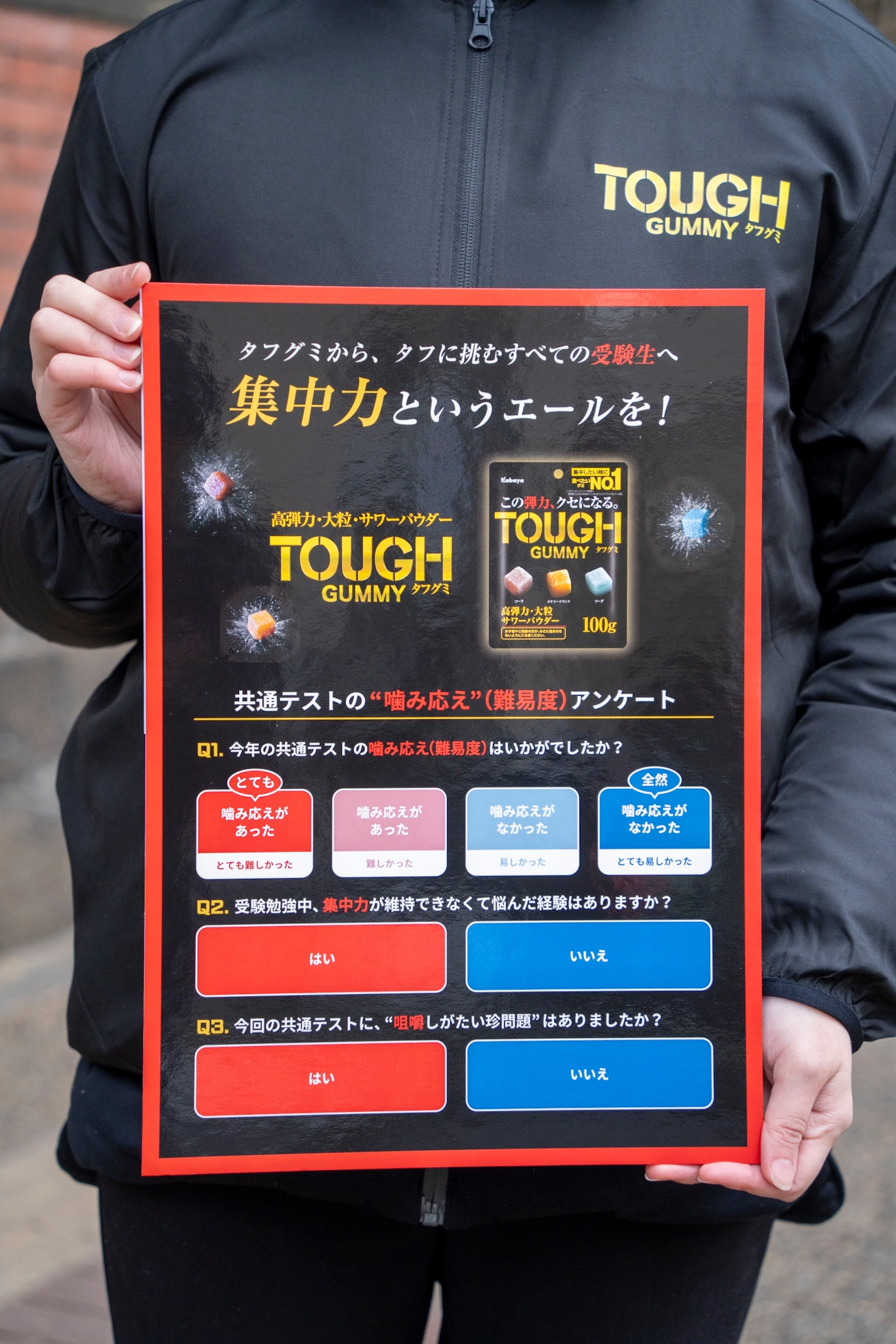 共通テスト直後の試験会場周辺で受験生を応援!『タフグミ』をサンプリング
