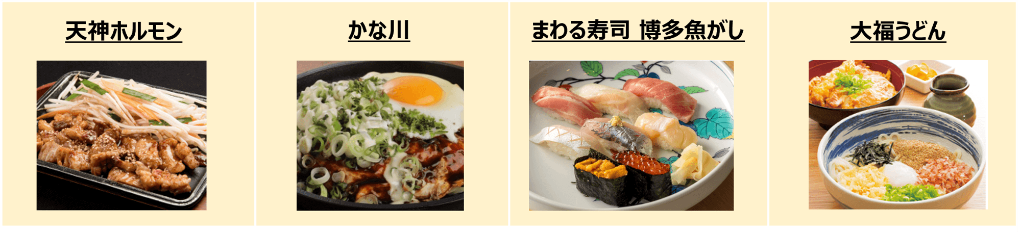 博多1番街 の以下の店舗にて、8月1日(金)より、「福岡よかとこコイン」をご利用いただけます。また、その他店舗(一部除く)も順次導入予定ですので、お楽しみにお待ちください。