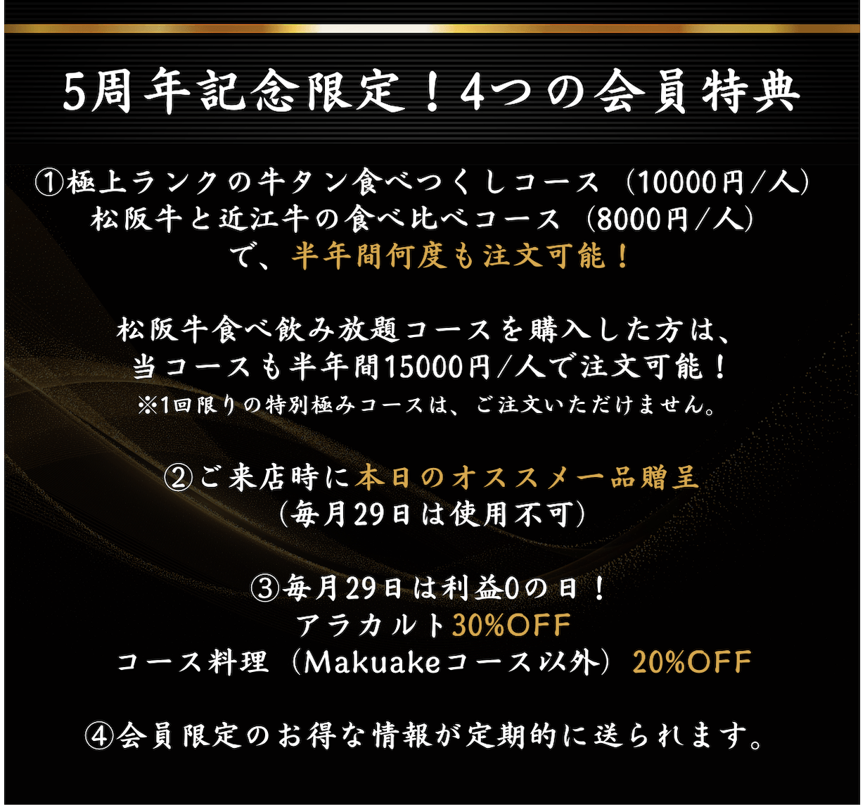 【期間限定】神コスパ!松阪牛食べ飲み放題が 目標金額1000%突破! 人気焼肉店5周年感謝メニュー4種がMakuakeに新登場! | NEWSCAST