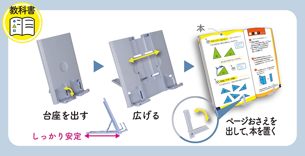 教科書・タブレット・スマートフォンが立つ! 持ち運びやすくて、収納する時はコンパクトに変形 学習用「書見台」が11月に新登場!