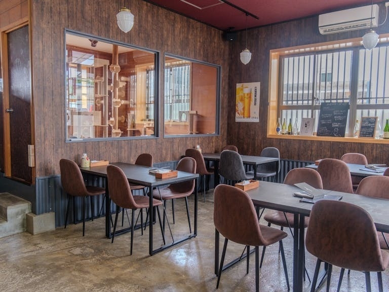 レストラン内に保護猫シェルターを設置し、営業中は来店者が猫を観察できる環境を提供します。