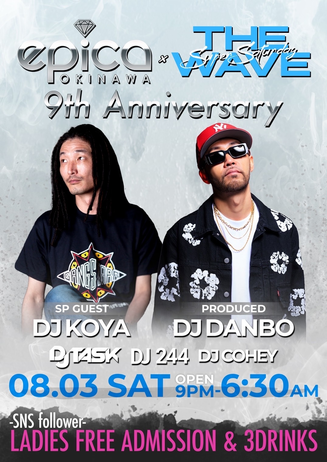 8月3日(土)、 JAPAN NO.1 HIP HOP NIGHT CLUB EPICA・沖縄にて、 9周年2マンアニバーサリーパーティー開催!