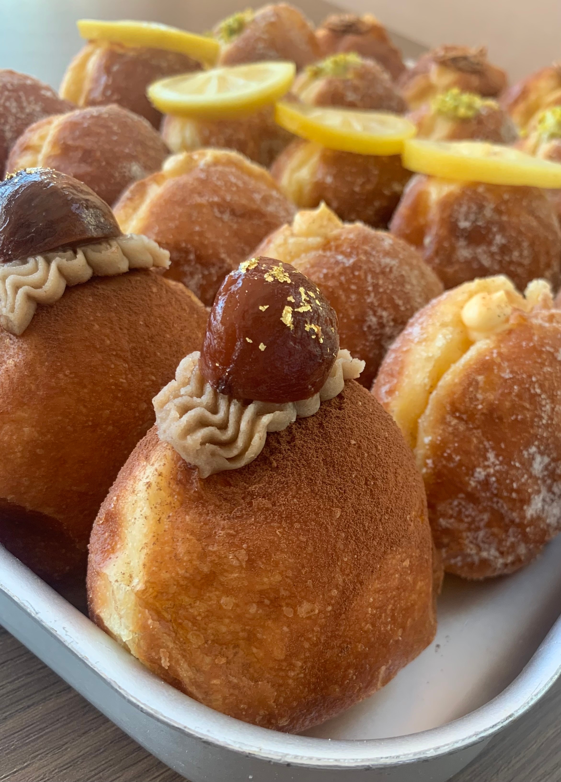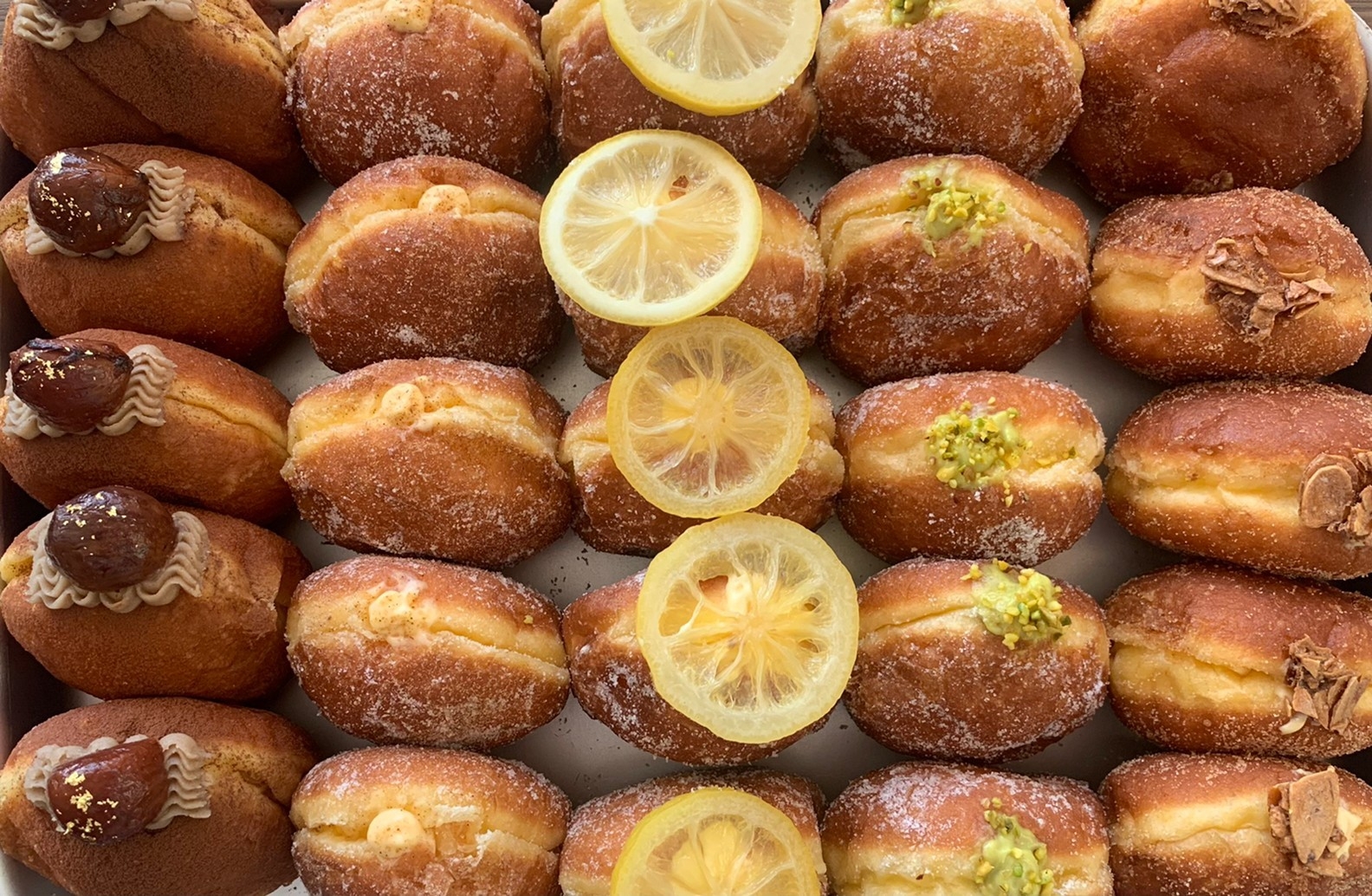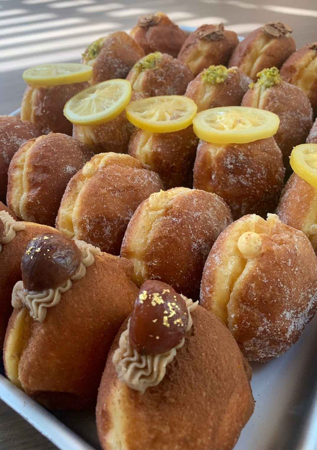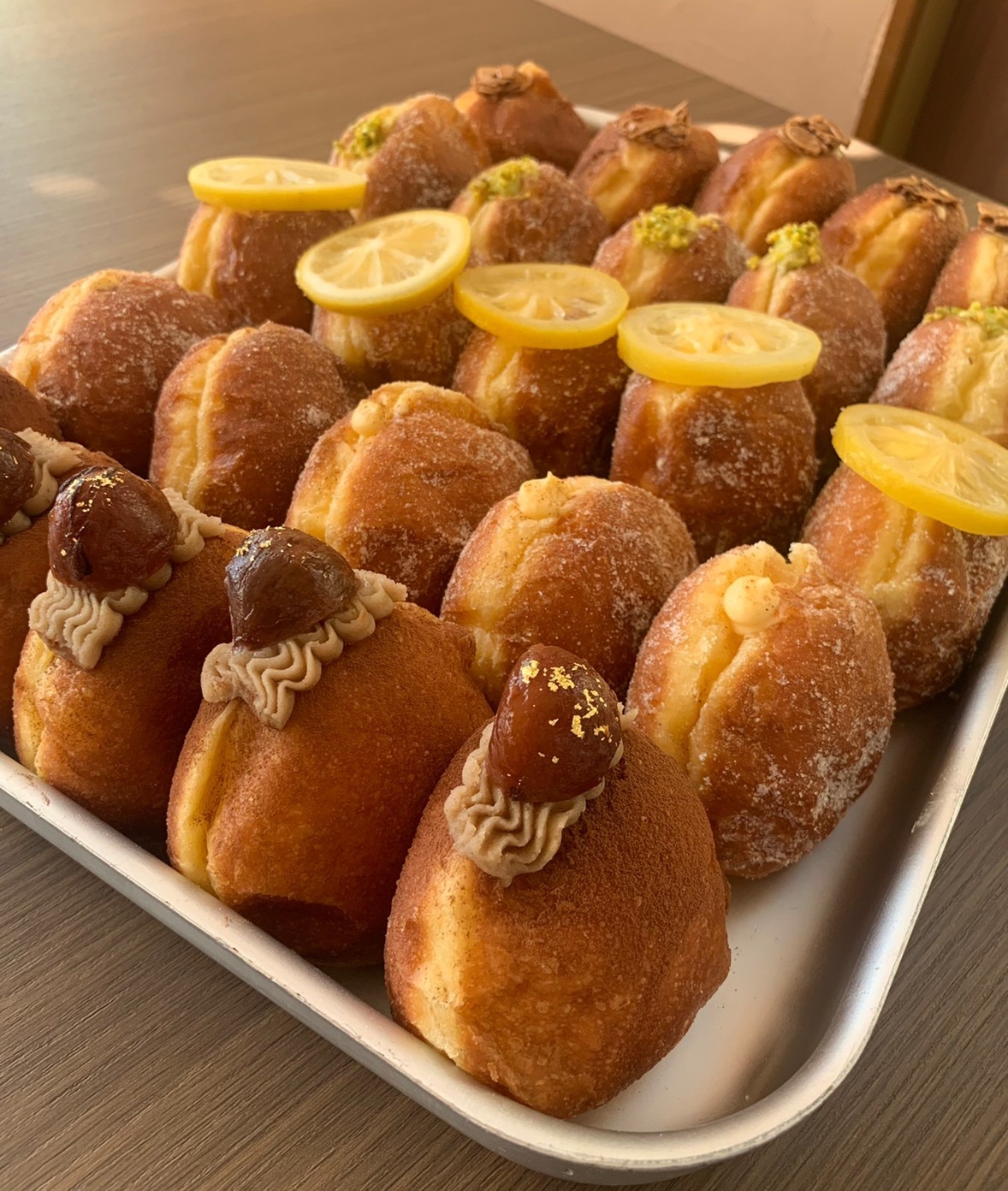 イタリア発祥のスイーツパン「マリトッツォ」の次に流行るとされている、郷土ドーナツ「ボンボローニ」。発酵させた生地を揚げて、中にカスタードクリームや自家製のフレーバークリームをたっぷり詰め込んだイタリアの伝統的なドーナツです。レ・フレールではネクストブレイクを予想し、夏前から販売をスタート。お店では完売が続出するほど人気商品となりました。この度定番の4種(プレーン、レモン、ピスタチオ、キャラメル)に加えて、秋にピッタリな新フレーバープレミアムマロンクリームを開発いたしました。ふわふわの生地、ふわとろ自家製クリームがたっぷり詰め込まれたふわふわとろとろボンボローニを一度味わってみてください。