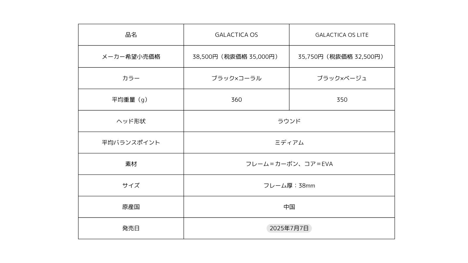 本シリーズは、操作性とスイートエリアの広さを追求したラウンド形状を採用し、上級者はもちろん、初心者にも扱いやすいモデルです。メーカー希望小売価格は、「GALACTICA OS」が38,500円(税抜価格35,000円)、「GALACTICA OS LITE」が35,750円(税抜価格32,500円)です。