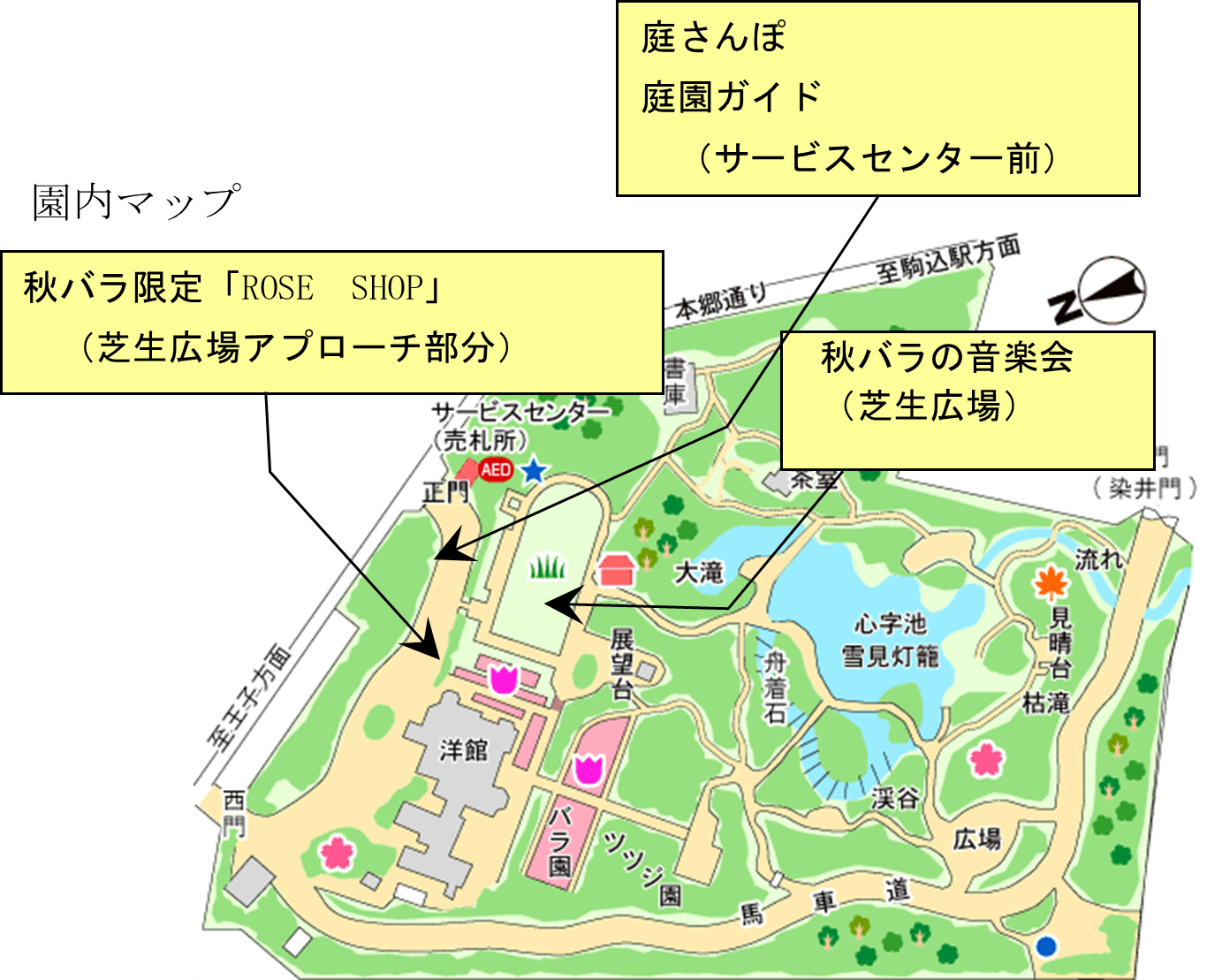 お問い合わせは旧古河庭園サービスセンター(03-3910-0394)までお電話にてお願いいたします。