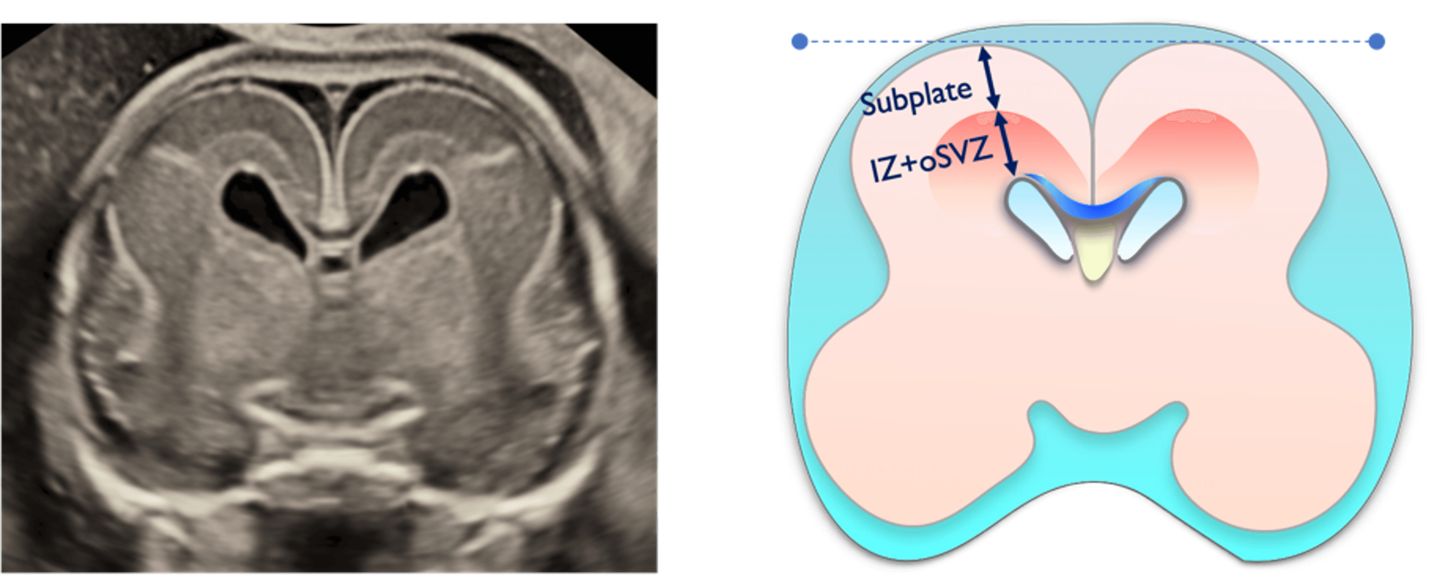 夫 律子院長が発表した研究は、胎児の脳における「サブプレート」と呼ばれる脳層に着目したものです。サブプレートは胎児期の一定の時期にしか観察されることがない特殊な脳層で、ヒトの大脳皮質形成初期においてニューロンの移動や神経回路の形成に重要な役割を果たし、神経発達の鍵を握る構造として注目されています。このサブプレートに着目して実際の胎児での観察実績をもつのは現在のところ世界でもクリフム出生前診断クリニックだけです。※当院調べ