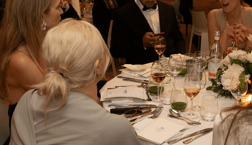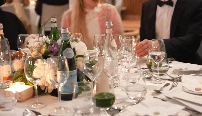 会場には、華やかなドレスやタキシードに身を包んだ150名のゲストたちが集い、CANNES GALAのレッドカーペットを優雅に歩く姿が、彼らのSNSでも観ることができます。宵闇の中、淡くやわらかな和蝋燭の光に包まれた会場にてスピーチの後にティーセレモニーより演目がスタートをきり、特別に用意されたコース料理はCANNES GALAのために選び抜かれた特別メニューで提供されました。