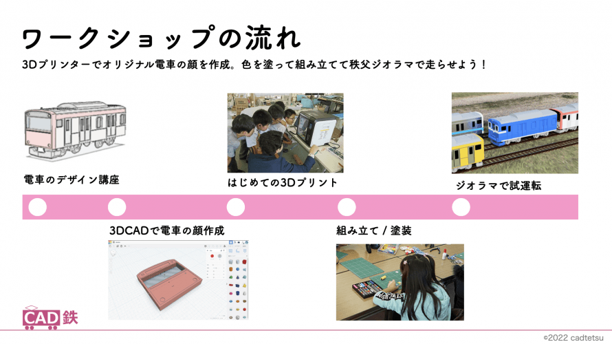 CAD鉄(読み:キャドてつ)は、3Dプリンターで鉄道模型を楽しむコミュニティとして2014年に始まりました。「すべての鉄道ファンに3DCADスキルを」をモットーに3Dモデリングイベントの企画、SNSでの情報発信をメインに活動を行なっています。