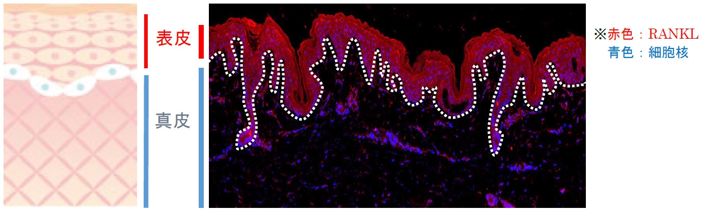 - 「RANKL」が表皮に多く発現するタンパク質であることを確認