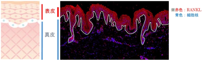 免疫と骨の健康に関わるタンパク質RANKLは皮膚の表皮に多く存在し、皮膚バリア機能及び保湿機能にも重要な因子であることが明らかになりました。