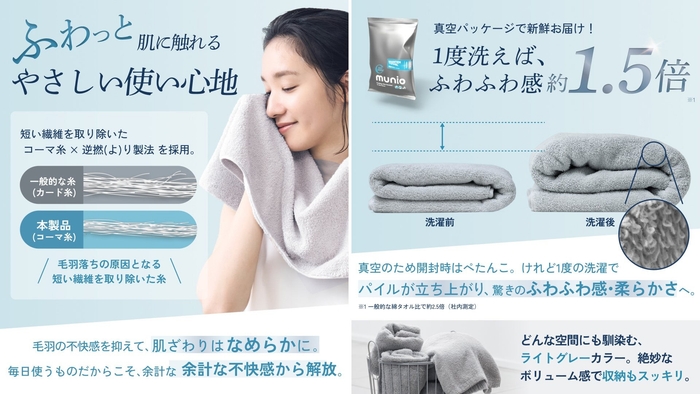 【MUNIO】「匂わない」を徹底追求したタオルブランドが新たに誕生。第一弾の商品として薬剤不使用の抗菌技術を採用した次世代タオル3種類が登場 | NEWSCAST