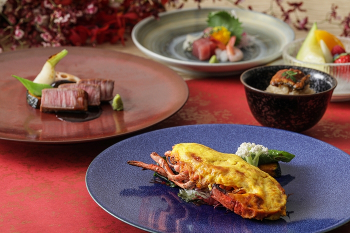 四季折々の美しい自然があふれる八事に佇むストリングスホテル 八事 NAGOYAでは、箸でお楽しみいただける和洋会席料理コースが登場。“フォアグラ茶碗蒸し 湯葉と生姜餡かけ 金箔仕立て”や、“牛フィレ肉のソテー 季節の炊き合わせとマデラソース”など、和と洋の匠の技が息づく、旬の味覚を心ゆくまでご堪能いただけるコースは、世代を超えてお楽しみいただけます。価格は、松竹梅の値段構成になっており、ご希望のシーンに合わせてお選びいただけます。