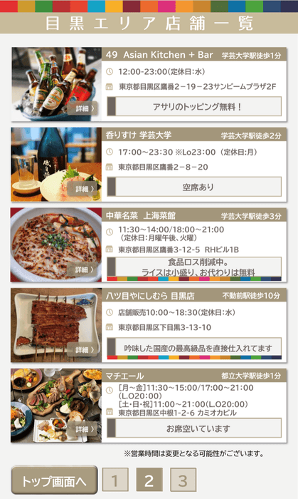 *実証実験店舗 (目黒エリア:12店舗 たまプラーザエリア:9店舗)