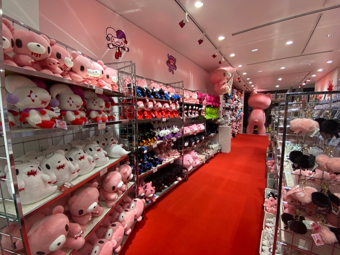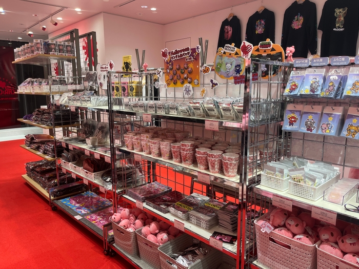 店内はグル~ミ~の世界観で装飾されており、およそ3mほどある大きな「ジャイアントグル~ミ~」の立像の展示や、ぬいぐるみの壁「チャックスウォール」、などなど写真映えするスポットや展示が盛り沢山です。