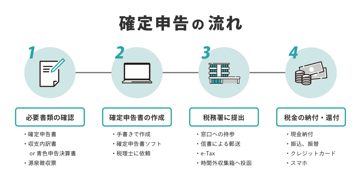確定申告とは、1月1日~12月31日までの1年間の所得と、その所得に対する所得税を計算し、翌年の2月16日~3月15日(申告期限・納期限が祝日・休日の場合は翌日が期限)までに税務署に申告・納税する手続きのことです。