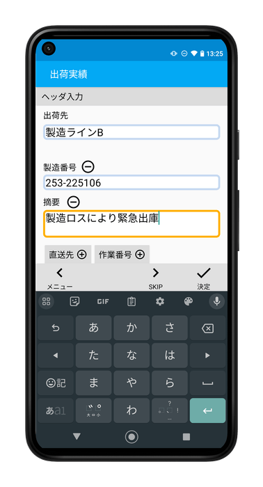 製造や保守業務において、現場で記録したい入出荷に紐づく案件情報をスマートフォンやハンディターミナルで記録できるよう機能を強化。
