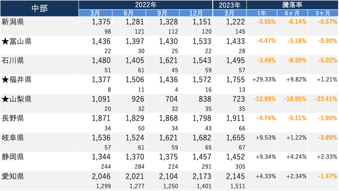 ※2023年3月の件数が50件未満の県については、算出根拠となるデータ数が少ないため★をつけて掲載。