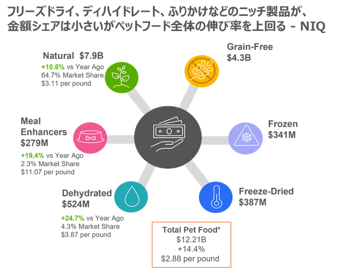 USペット市場では「ディハイドレート」、「フリーズドライ」、「エアドライ」といった ユニークな保存技術のペットフードが22年には金額ベースで24.7%増加 - アメリカにおけるペット関連消費調査より -