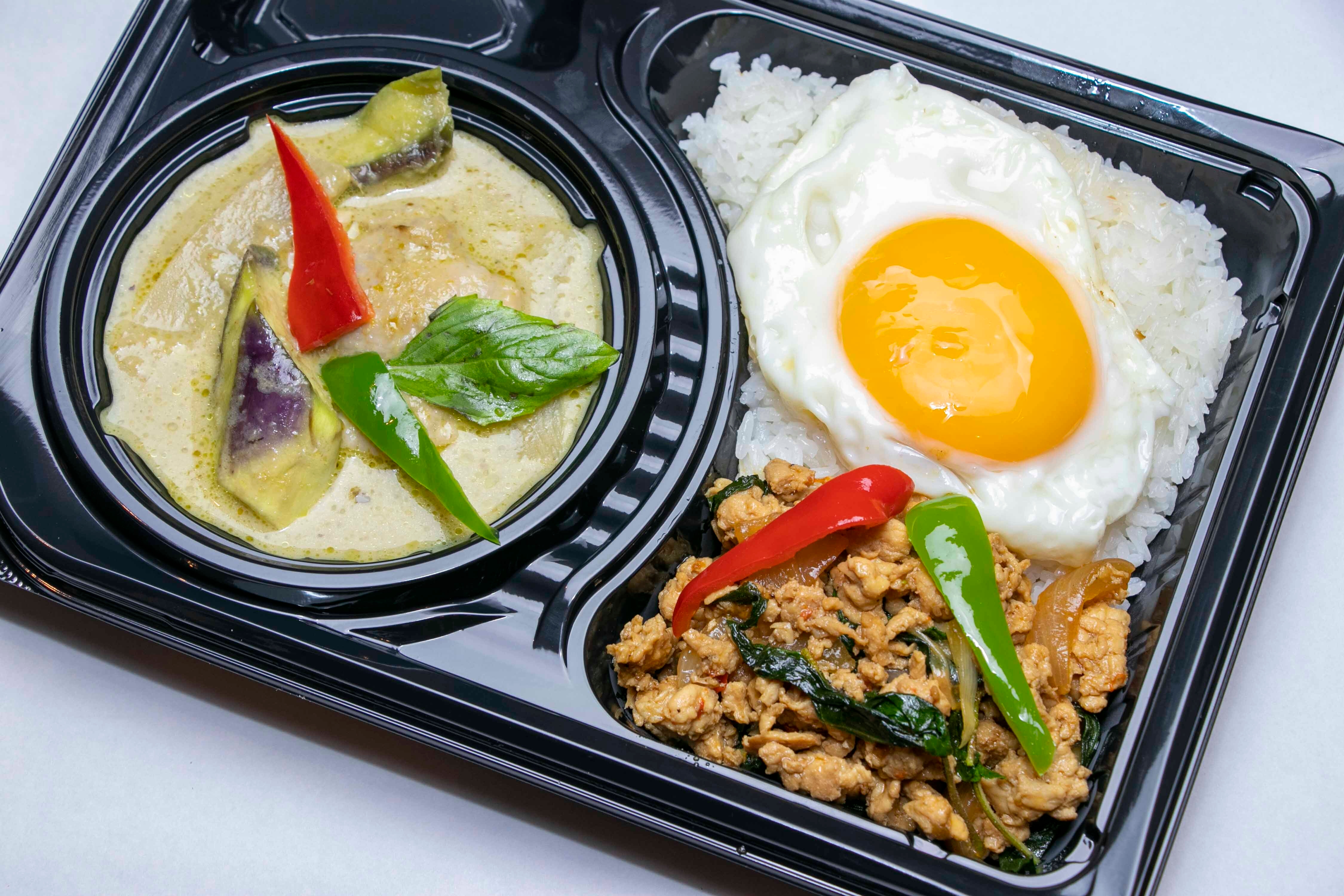 また、日本でも人気屋台料理の『ガパオ・ラーカオ(鶏バジル炒めごはん)』や『パッタイ(タイ式焼きビーフン)』、『カオマンガイ(タイ式チキンライス)』や野菜たっぷりヘルシー『生春巻』もお楽しみ頂けます。店頭にてお持ち帰り商品も豊富に揃えており、朝8時より営業しております。