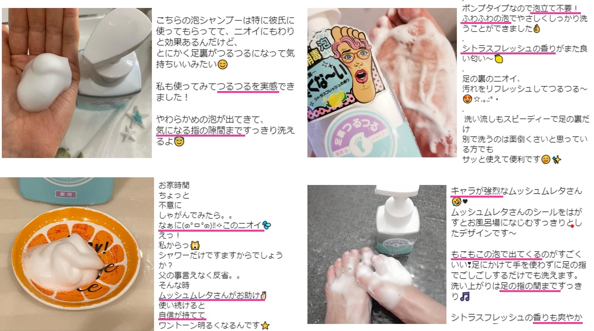 泡で出てくるので、気になる足の指の隙間まで「泡」で包み込み、しっとりとした洗い上がりに・・・。