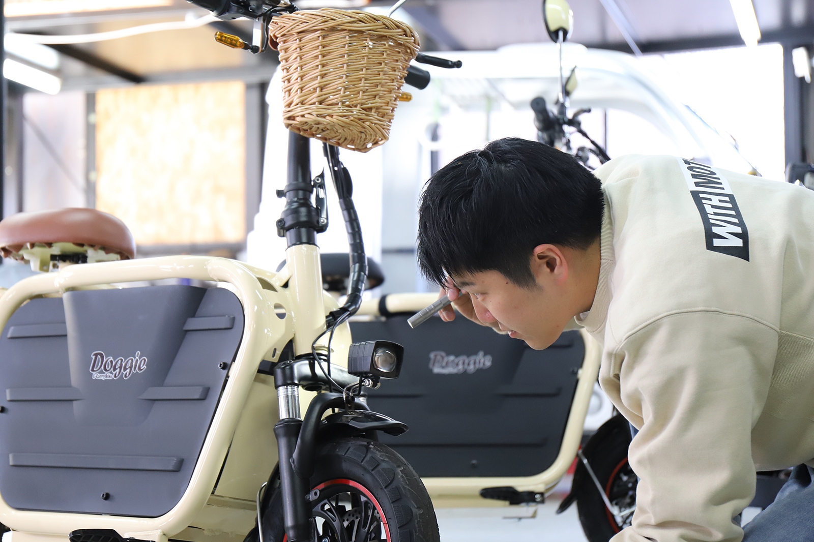 WITH MOTOは「笑顔になるトライク・APtrikes125」の販売店としても精力的に活動しており、「乗り物」に対する対応力には自信があります。「愛犬と旅する電動バイクDoggie(ドギー)」にも様々な工夫・改良を施し、より乗りやすく、より楽しめるバイクに育てリリースを開始いたします。
