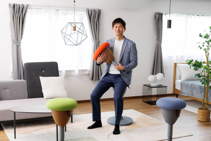 自らの腰痛経験から開発した背もたれのない「姿勢サポートチェア」について、クラウドファンディングサービス「Makuake」での先行販売を実施しています。