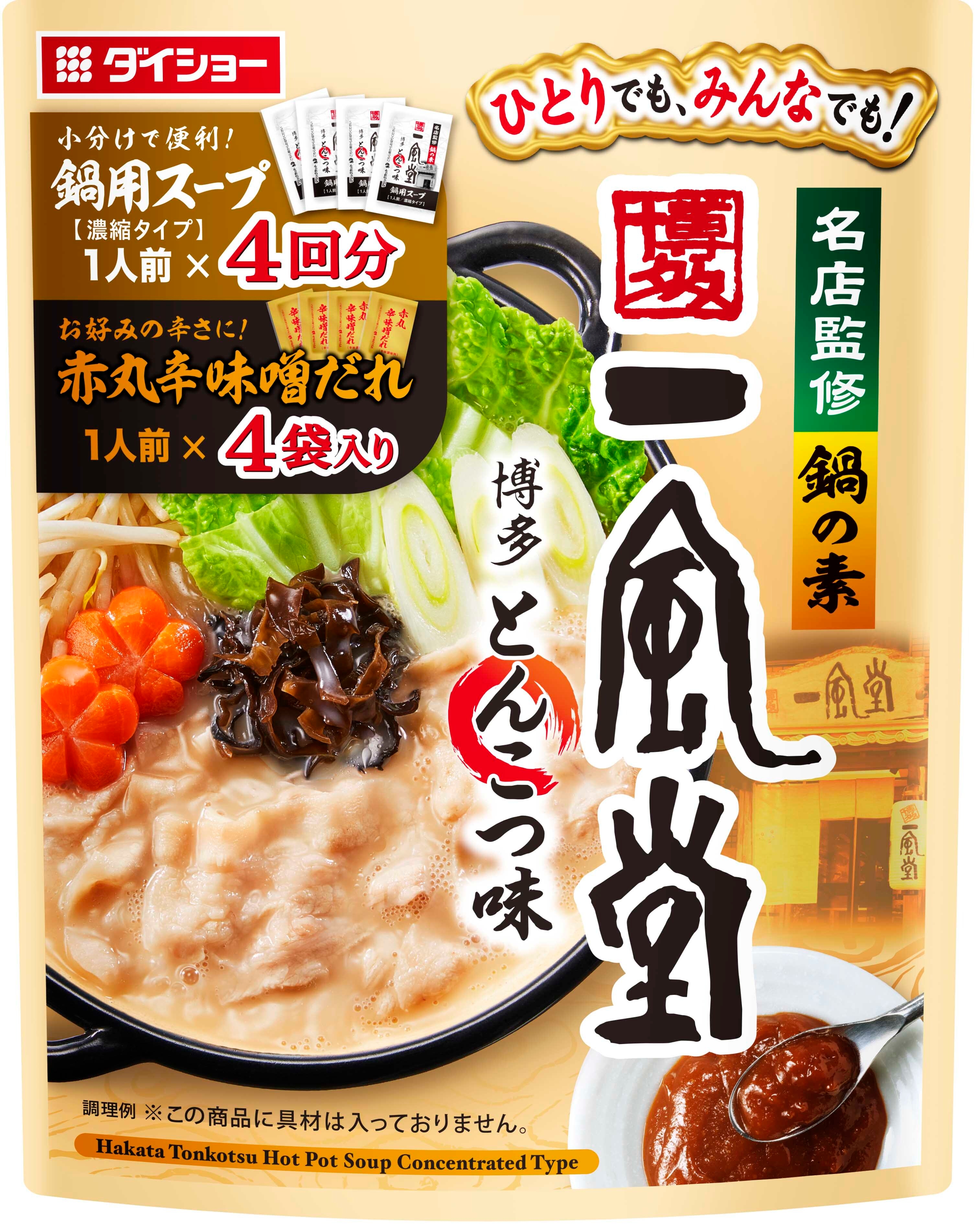 株式会社ダイショー(本社:東京都墨田区、代表取締役社長:松本 俊一)は、2024年秋冬の新製品として『名店監修鍋の素 一風堂博多とんこつ味』を8月1日(木)より全国で発売します。