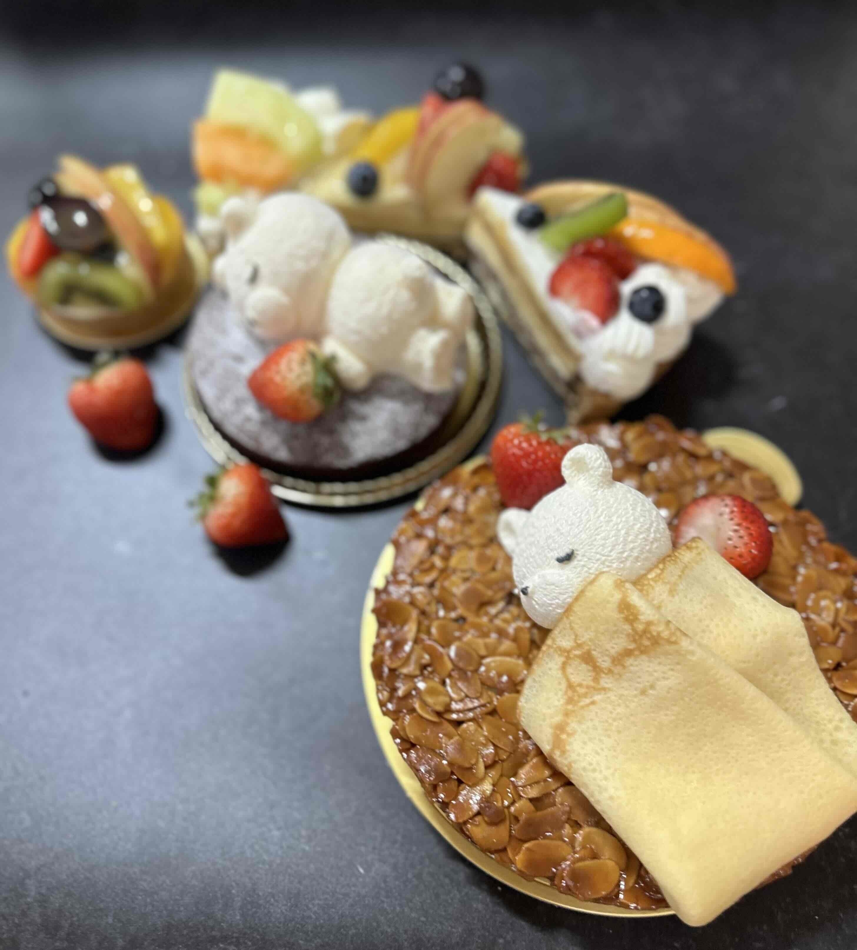 「おねんねクマちゃん」は冷凍されており、解凍しても美味しくいただけるよう開発しました。冷凍なのでお家に連れて帰り、ロールケーキに乗せたりスポンジの布団をかけたり激カワにアレンジできます。