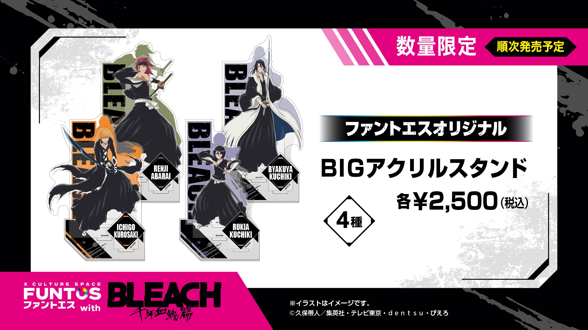 描き下ろしイラストを使用したBIGアクリルスタンドです。黒崎一護、朽木ルキア、朽木白哉、阿散井恋次の4種展開。