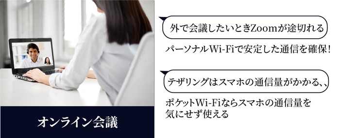 外で会議したいのに通信が悪く、途切れ途切れになったり、スマホのテザリングでは容量が一気になくなる。