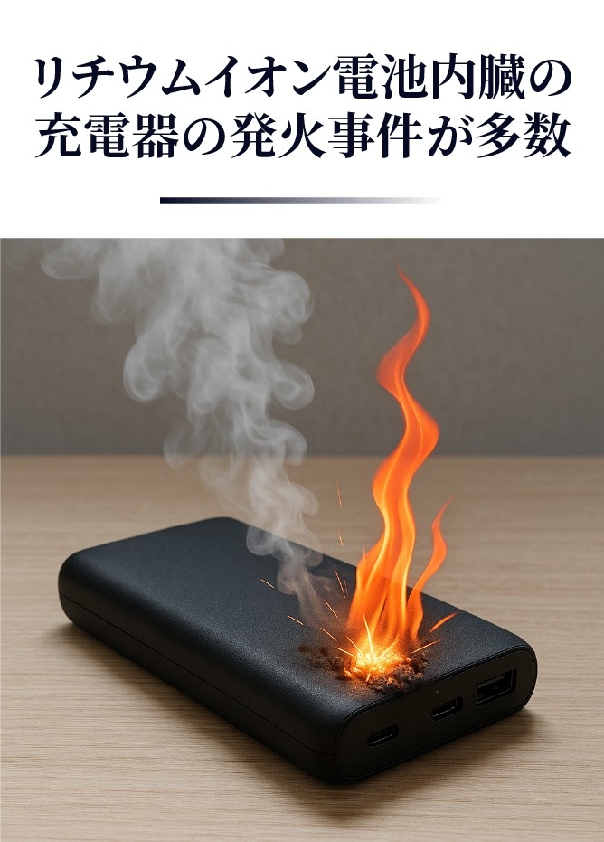 また、モバイルバッテリーの所持率が増えるなか、発火事故がよくニュースに取り上げられます。