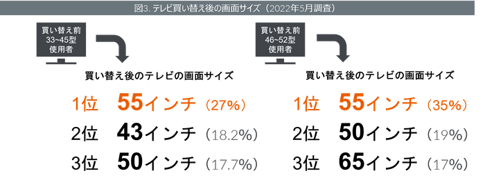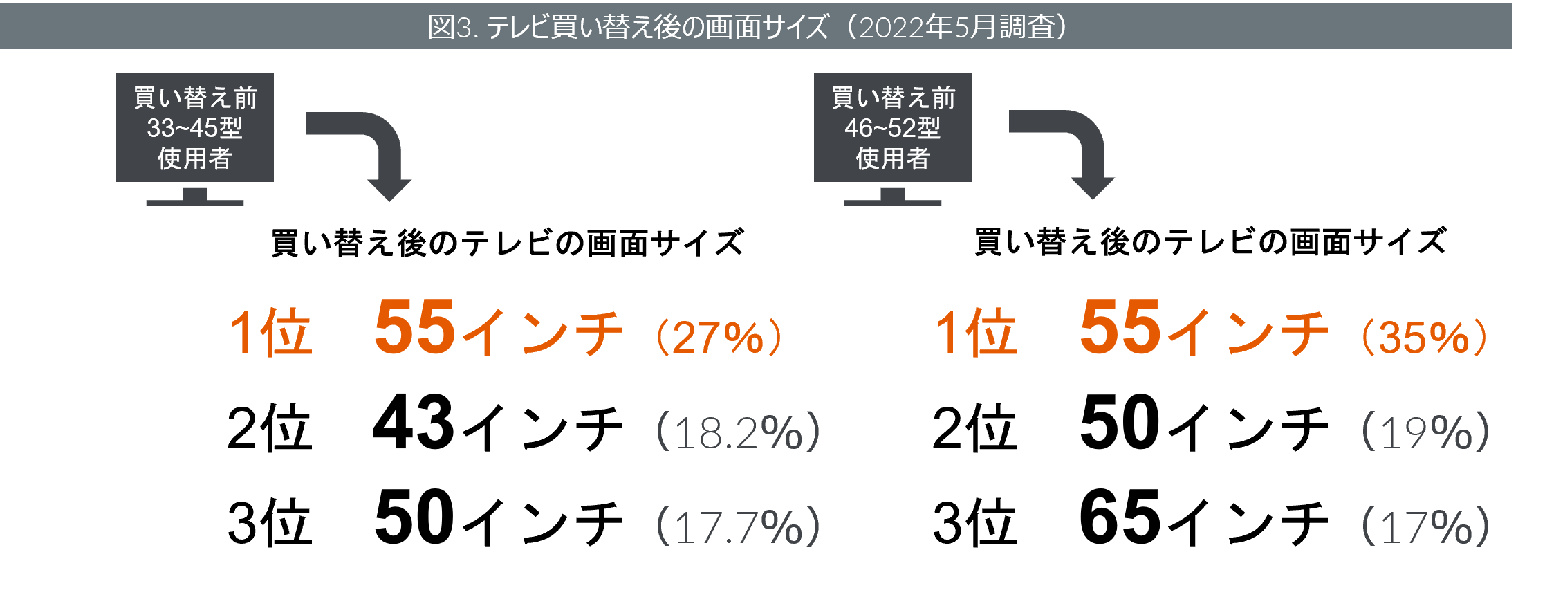 ・買い替え時には1クラス大きい画面の製品を選ぶ傾向にある。