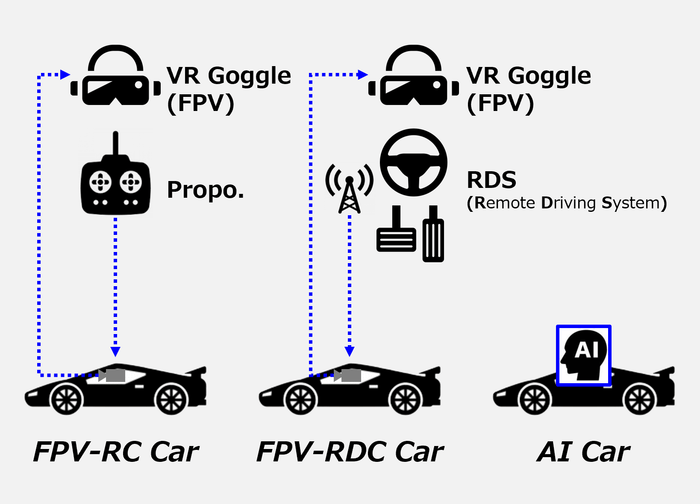 ●FPV-RDC Car:車載カメラ映像をVRゴーグルで見ながら(FPV)、