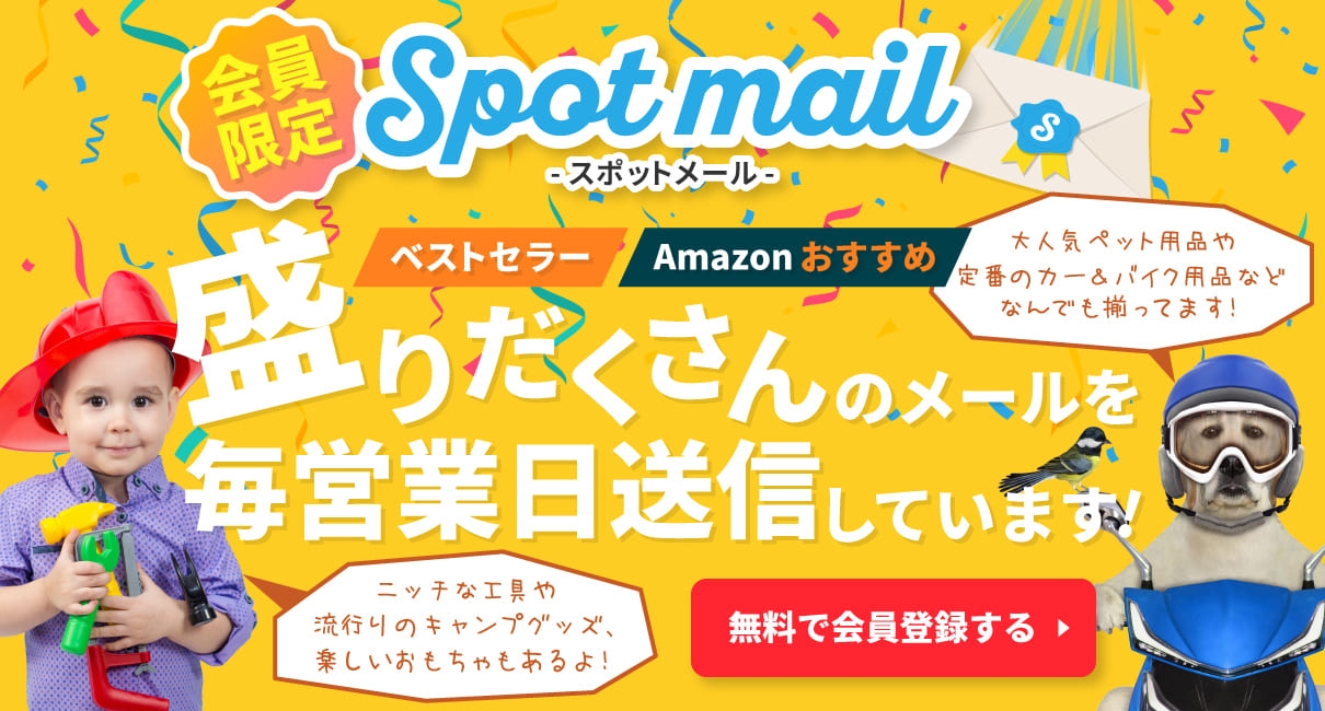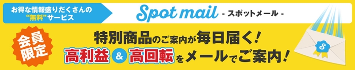 【Amazonで販売する商品をお探しの方にオススメ!】無料会員登録をしていただいた方限定で、売れ筋商品のご案内が毎日届く『スポットメール配信サービス』をはじました。