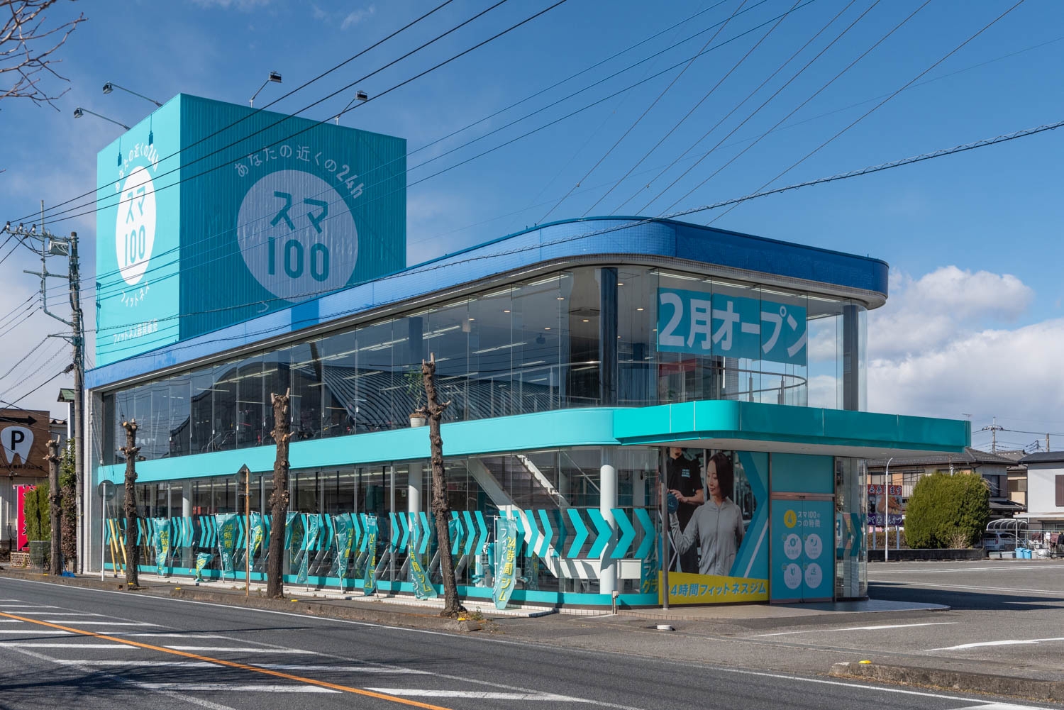 スマートフィット100は、「フィットネスを身近に」することを経営理念に掲げ2015年に1号店オープン、お手頃価格で24時間利用できるフィットネスジム・フランチャイズです。現在、関東を中心に40店を展開、会員数は2万人を突破、外からトレーニング風景が見える立地に加え、スマ100ブルーとホワイトの明るいブランドカラーは女性に支持され24時間フィットネスジムの中でも、女性比率が高いのがスマ100の特長です。