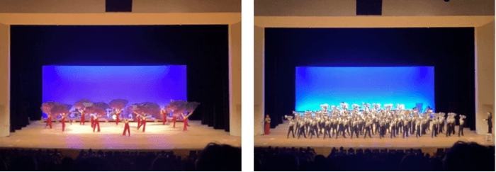 ドラムメジャーの生徒は、“『blastブラスト!』曲は、いつも学校で演奏しているような曲とは少し違うところが多く、初めてやることも多かったので、新しい表現の仕方や演奏方法などたくさん学ぶところがあり、今後演奏する曲に活かしていきたいと思います。”とコメント。その独自の空気感で会場にいる観客を虜にさせ、パワフルなパフォーマンスを披露しました。