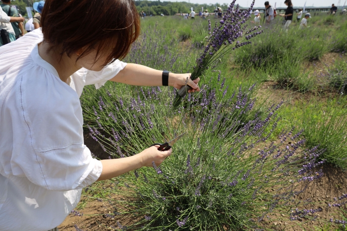 また、イベント会場を駐車場内に移設し、より利便性の向上に努めました。そして記憶に残る景色をお楽しみいただけますよう、ラベンダーを背景に撮影できるフォトスポットを園内に増設しました。
