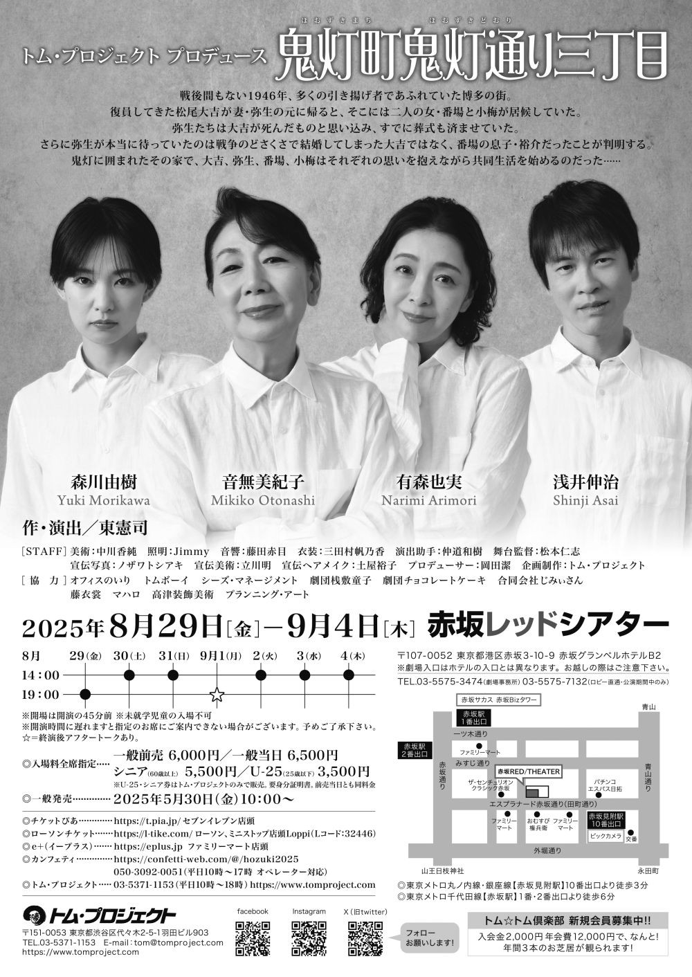 トム・プロジェクト プロデュース『鬼灯町鬼灯通り三丁目』が2025年8月29日(金)~ 9月4日(木)に赤坂レッドシアター(東京都港区赤坂3丁目10−9 B2F)にて上演されます。