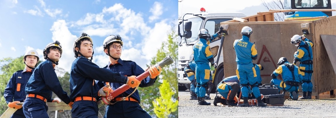 和歌山県は、県内全域が「南海トラフ地震防災対策推進地域」に指定されており、和歌山キャンパスがある紀の川市には、中央構造線断層帯の一部である根来断層・桜池断層帯が走っています。平成31年(2019年)4月には、学生・職員等が地域の防災活動に貢献するための消防団「紀の川市消防団本部近畿大学部」を結成し、防災啓発活動に取り組むとともに、地域の安全に貢献できるよう定期的な訓練を行っています。