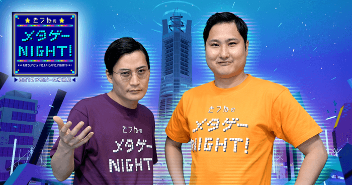 お笑いコンビ・きつね(大津広次、淡路幸誠)の記念すべき初冠番組!最新のゲーム事情からメタバースイベントまで、未だ知られていないメタバースをきつねと一緒に楽しみながら学んでいく、メタバース情報バラエティー番組です。